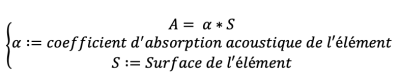 C’est la surface fictive d’une paroi (ou d’un matériau) parfaitement absorbante ayant la même absorption acoustique que la paroi (ou le matériau considéré (e). elle s’exprime par l’expression.